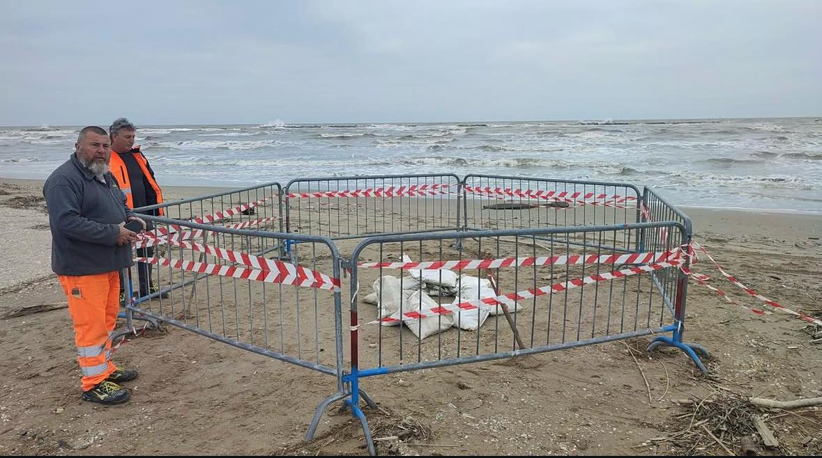 L’area è stata delimitata con nastro bicolore. Il Comune di Cesenatico ha emesso un’ordinanza per delimitare la zona, e predisporre l’intervento di personale specializzato per la bonifica.